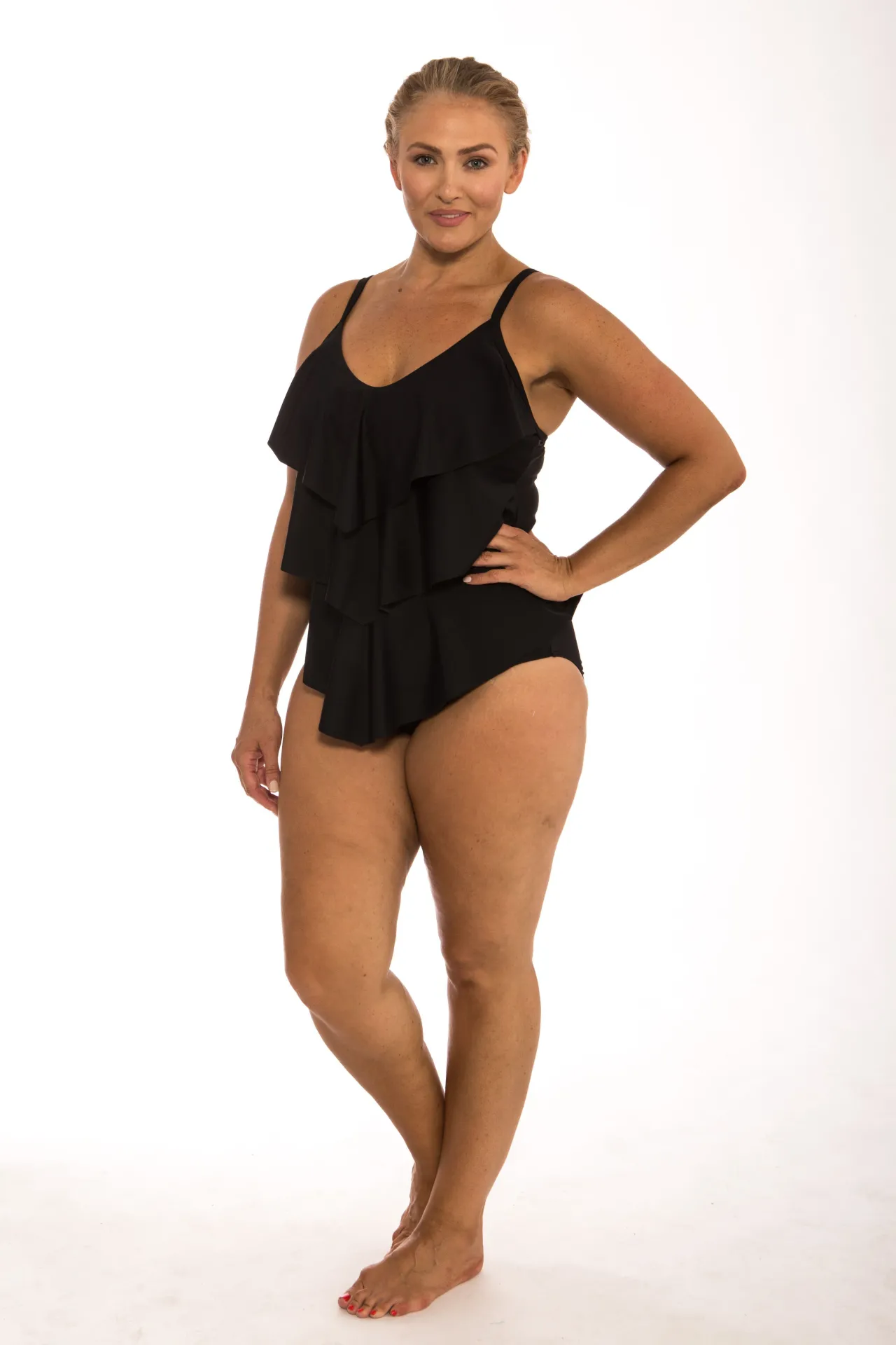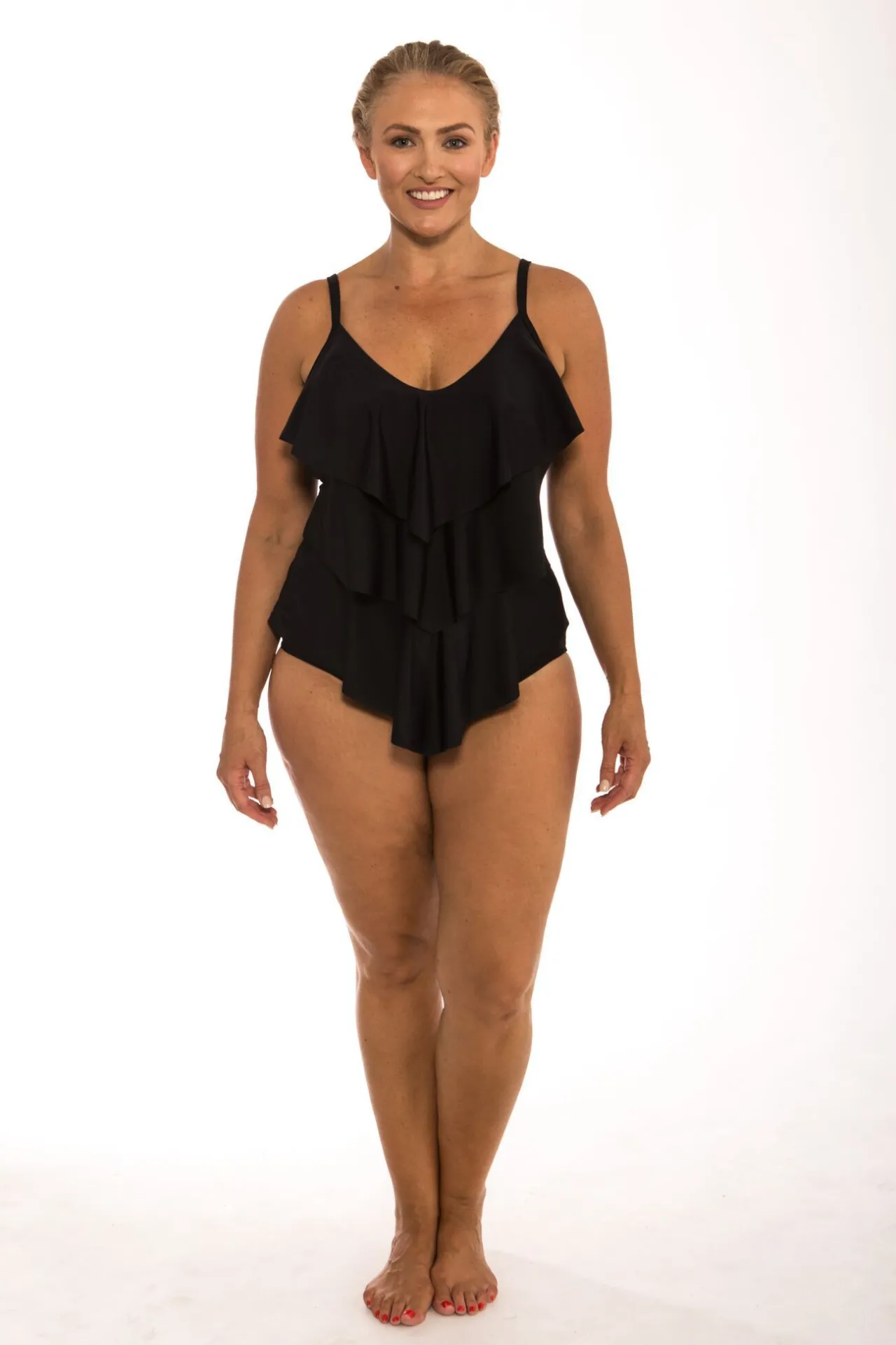 - Flattering Ruffled One Piece